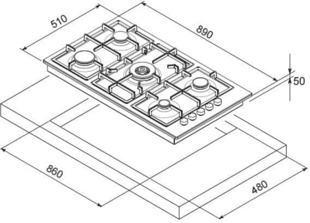 سطح 90سم غاز شبك خفيف ماستر جاز ايطالي موديل ( H95GLEX )